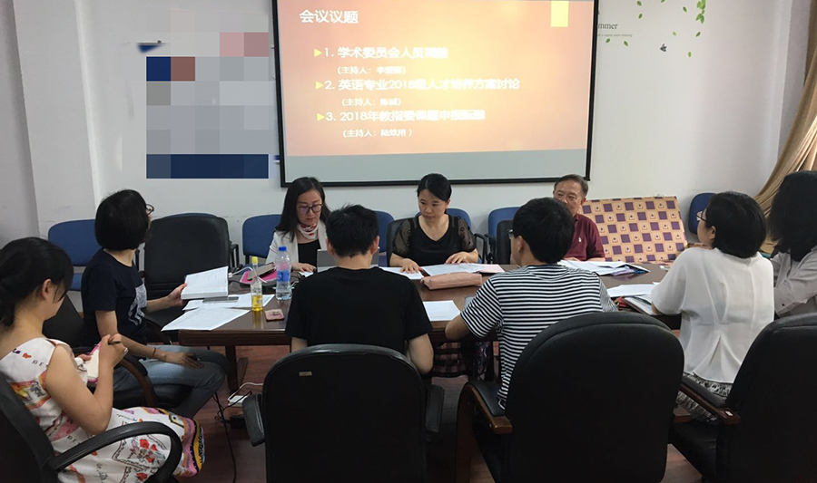 本次会议共有三项议题:一是学术委员会人员调整;二是英语专业2018级专业人才培养方案审定;三是教育部职业院校教指委课题申报酝酿。